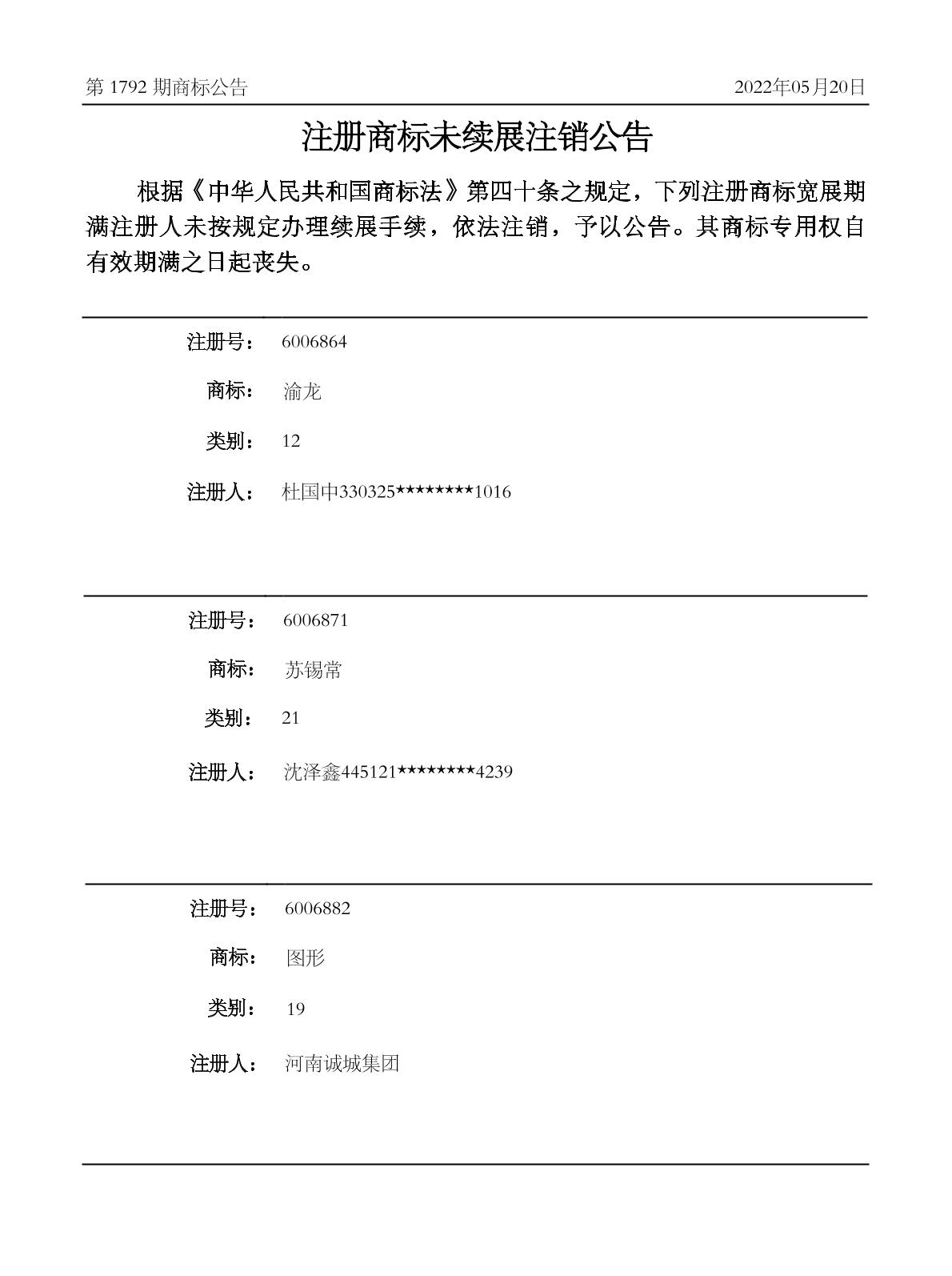 2022-05-20 期满未续展注销商标 | 排版未续展注销公告