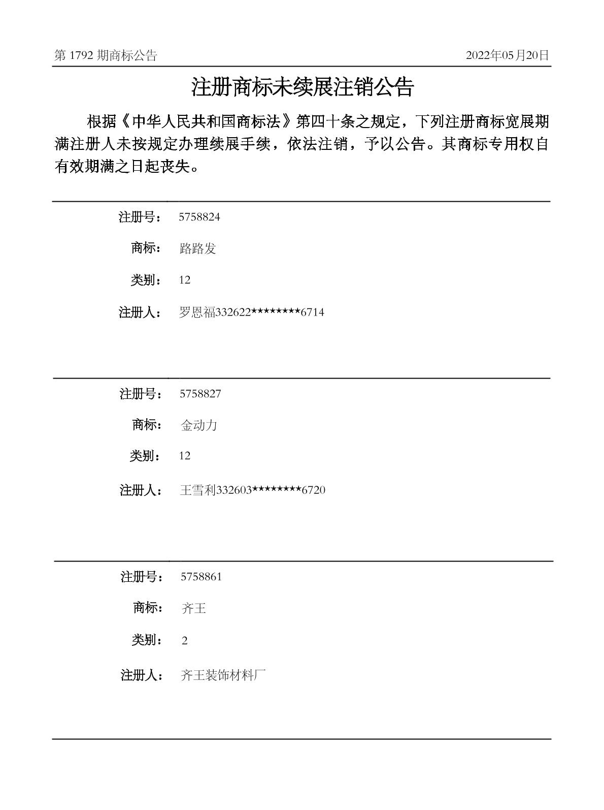2022-05-20 期满未续 展注销商标 | 排版未续展注销公告