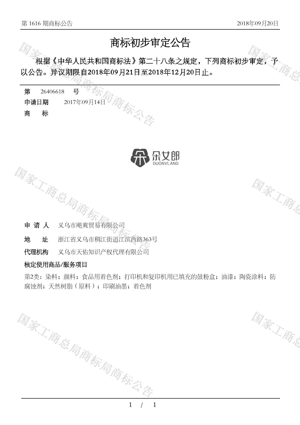 0201-染料;0201-着色剂;0202-着色剂;0202-颜料;0203-食品用着色剂;0204-印刷油墨;0204-打印机和复印机用已填充的鼓粉盒;0205-油漆;0205-陶瓷涂料;0206-防腐蚀剂;0207-天然树脂(原料) - 1616