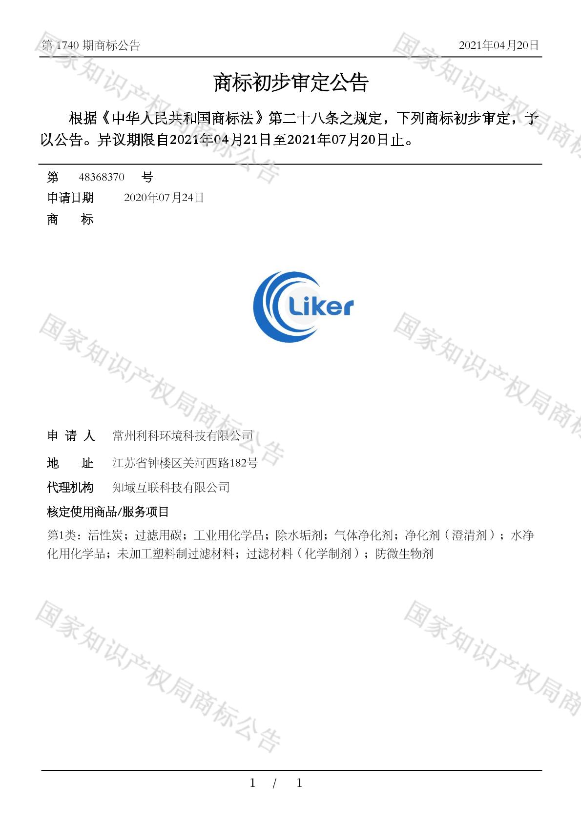 0104-净化剂(澄清剂);0104-工业用化学品;0104-未加工塑料制过滤材料;0104-气体净化剂;0104-水净化用化学品;0104-活性炭;0104-过滤材料(化学制剂);0104-过滤用碳;0104-除水垢剂;0105-防微生物剂 - 1740