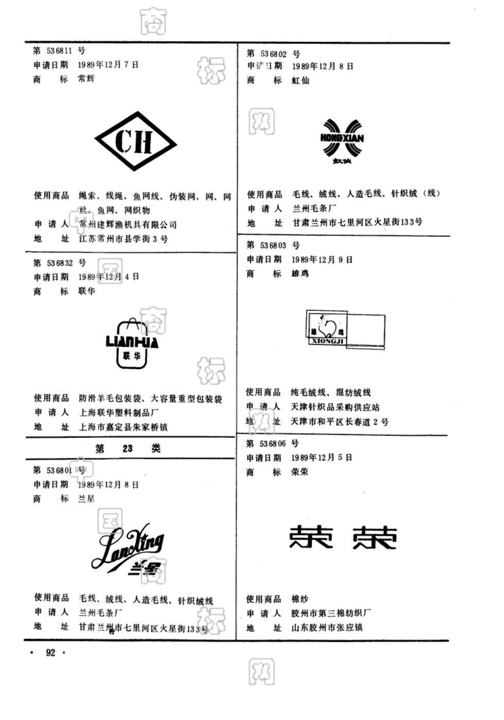 商标注册公告(一) 1990-12-10 第307期 查看公告