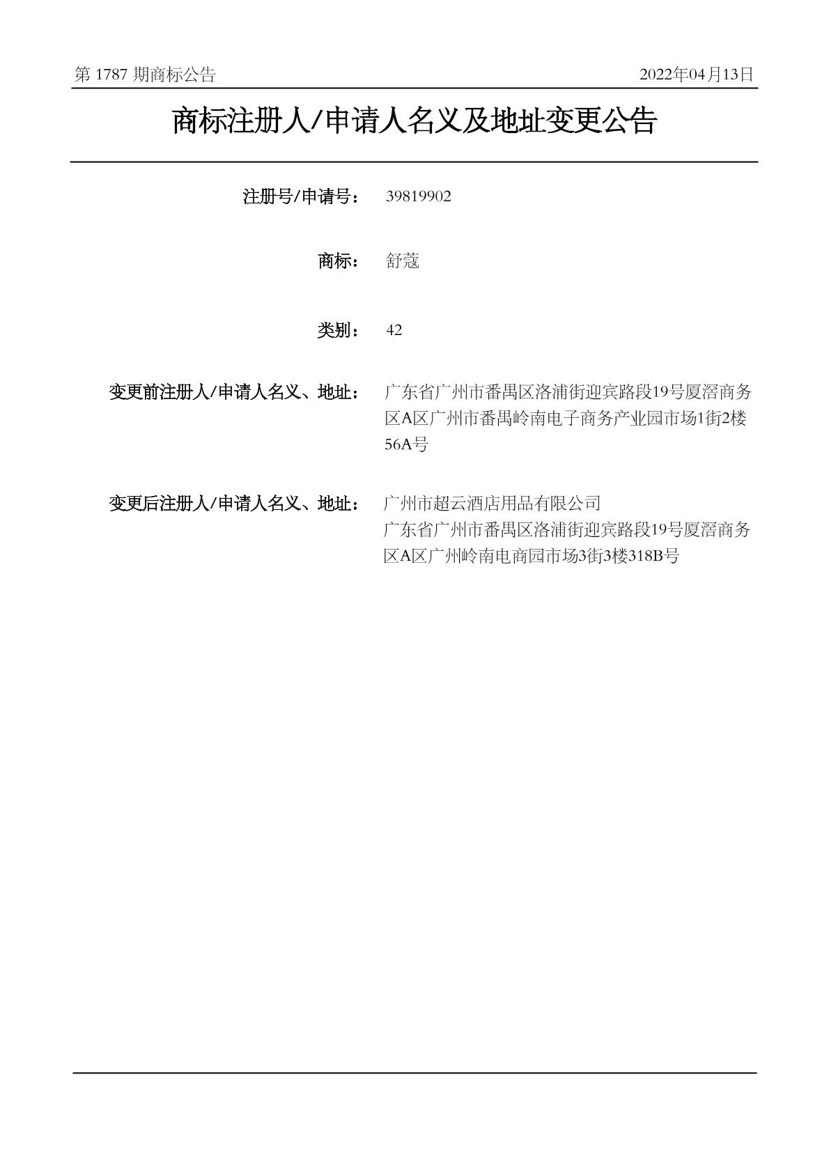 2022-04-02 变更商标申请人/注册人名义/地址 | 核准证明打印发送