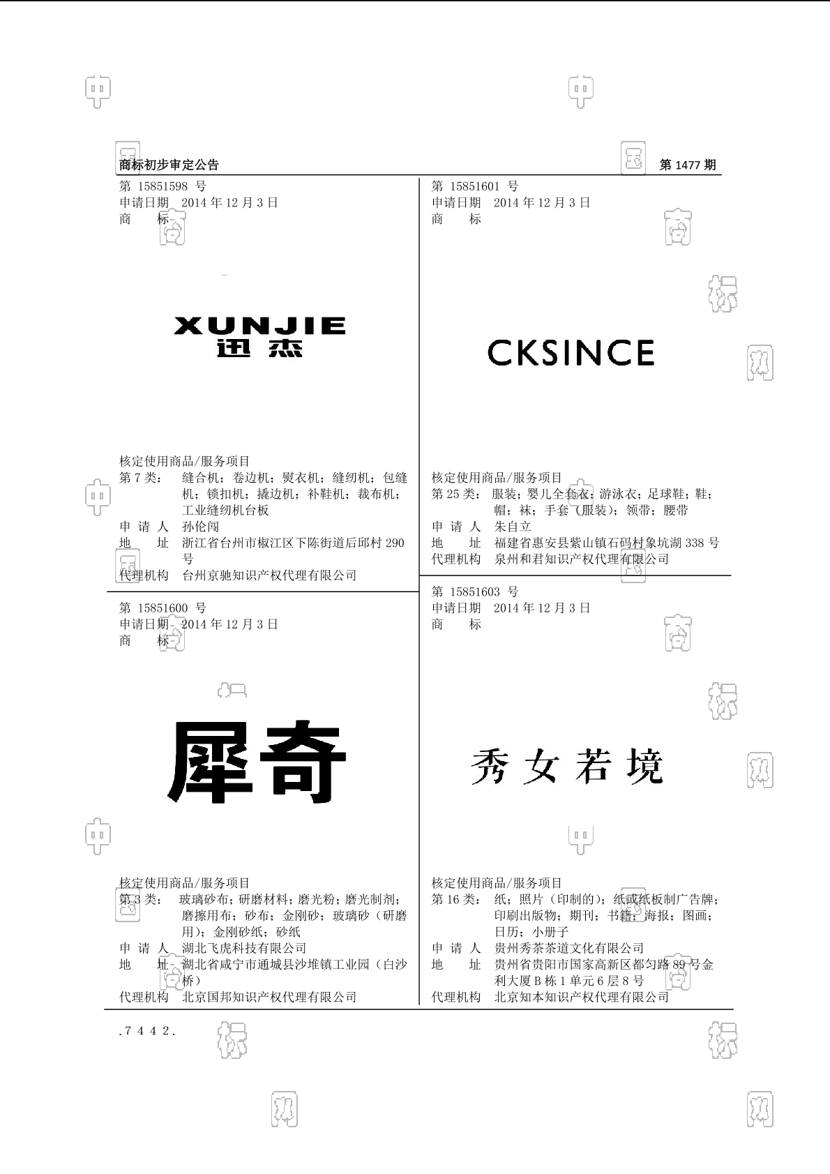 2016-01-27 商标注册申请 | 商标注册申请注册公告排版完成