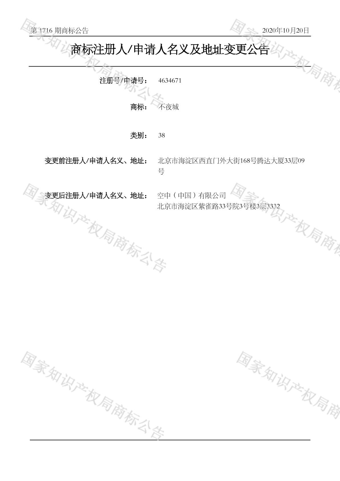 2020-10-14 变更商标申请人/注册人名义/地址 | 核准证明打印发送