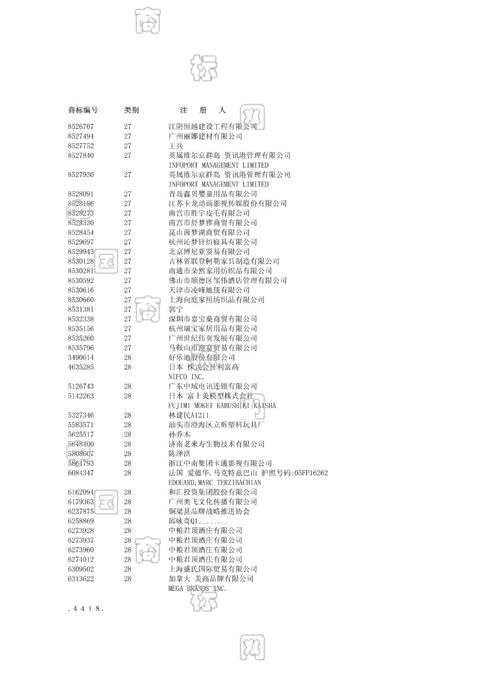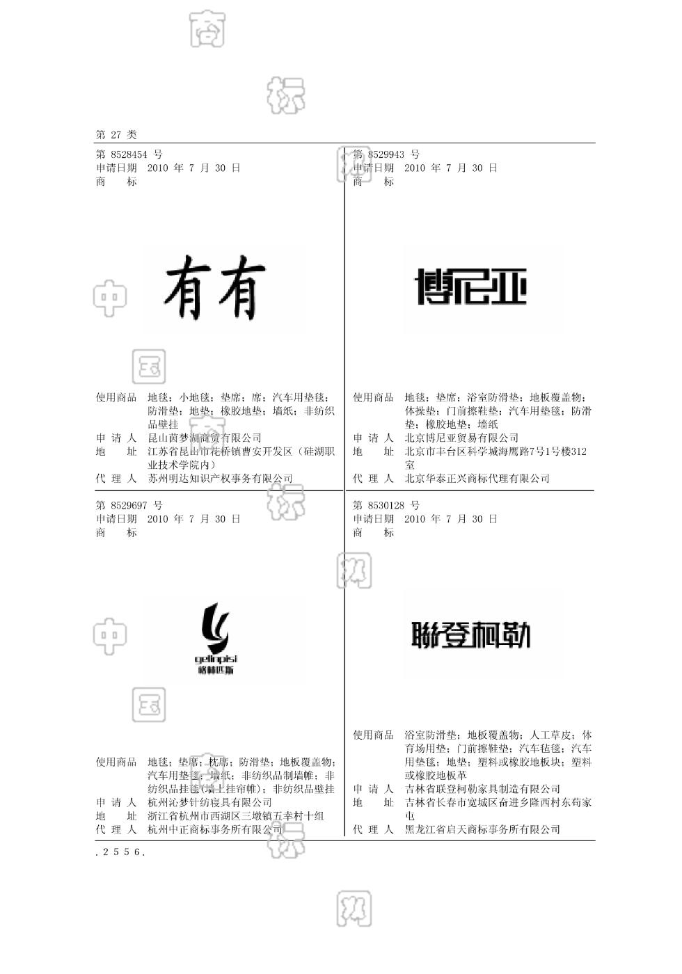 2701-地毯;2701-小地毯;2702-垫席;2702-席;2703-地垫;2703-橡胶地垫;2703-汽车用垫毯;2703-防滑垫;2704-墙纸;2704-非纺织品壁挂 - 1262