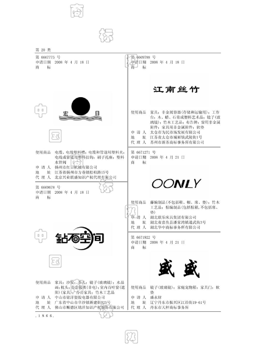2001-家具;2001-床垫;2001-沙发;2002-非金属桶;2004-镜子(玻璃镜);2005-竹木工艺品;2006-木、蜡、石膏或塑料艺术品;2009-家庭宠物箱;2012-家具门;2013-软垫 - 1203