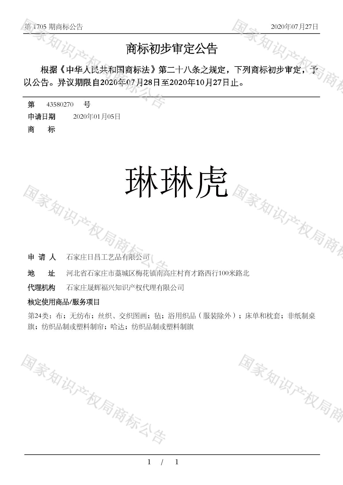 2401-布;2402-无纺布;2403-丝织、交织图画;2404-毡;2405-浴用织品(服装除外);2406-床单和枕套;2407-纺织品制或塑料制帘;2407-非纸制桌旗;2409-哈达;2410-纺织品制或塑料制旗 - 1705