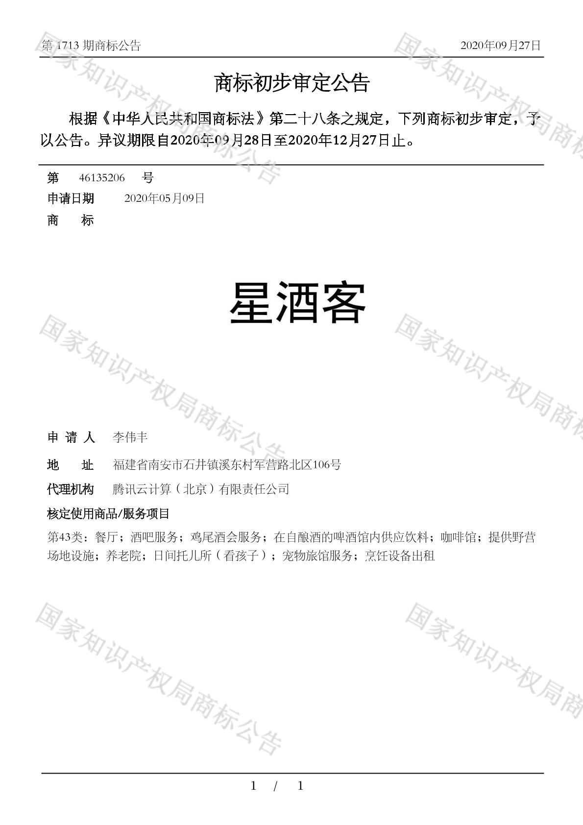 4301-咖啡馆;4301-在自酿酒的啤酒馆内供应饮料;4301-酒吧服务;4301-餐厅;4301-鸡尾酒会服务;4302-提供野营场地设施;4303-养老院;4304-日间托儿所(看孩子);4305-宠物旅馆服务;4306-烹饪设备出租 - 1713