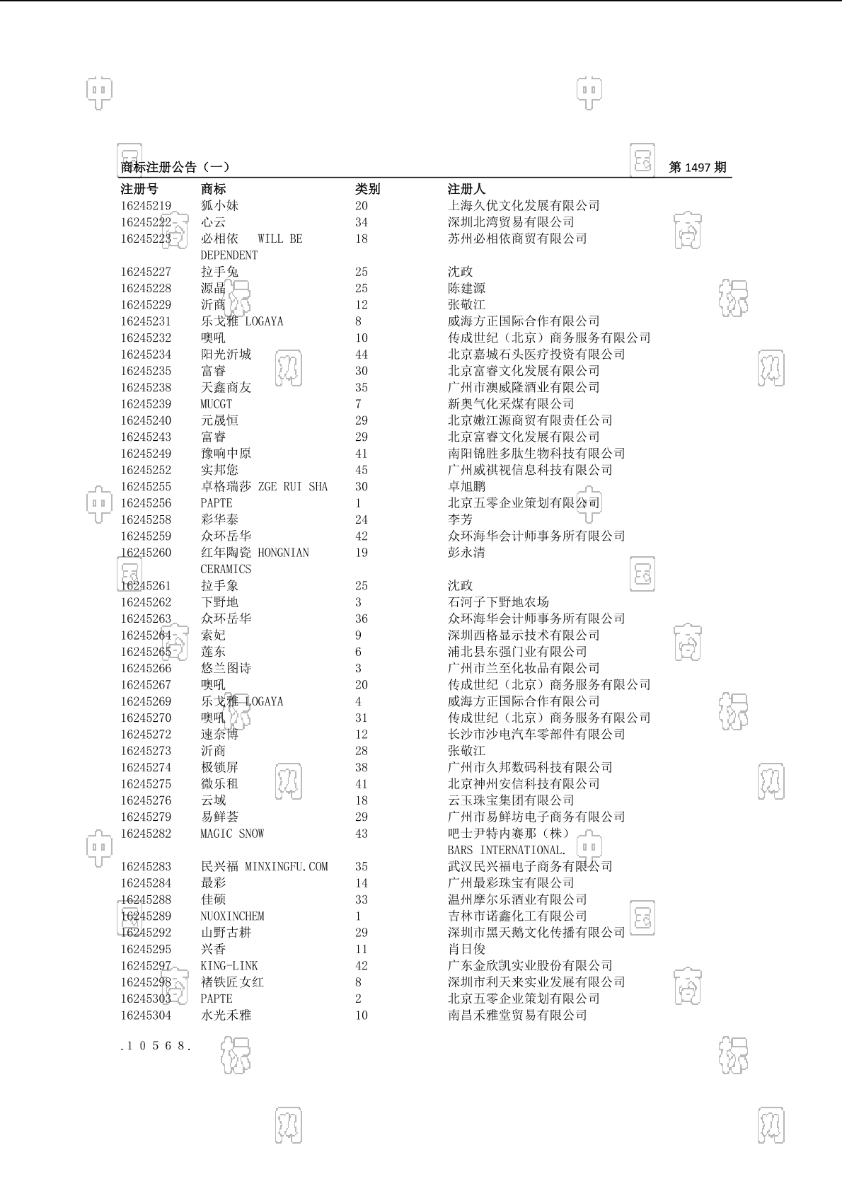 2016-03-28 商标注册申请 | 商标注册申请注册公告排版完成