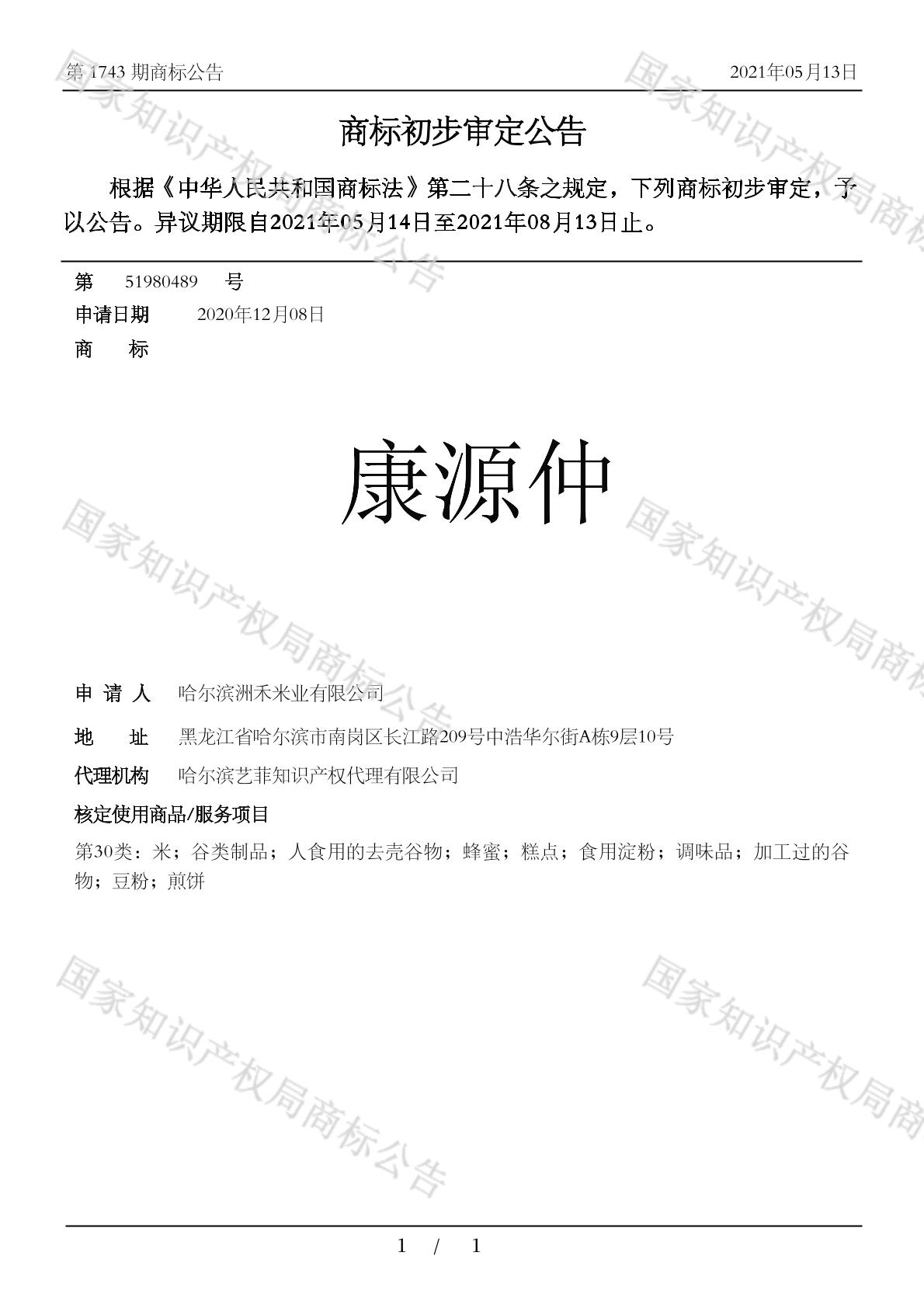 3005-蜂蜜;3006-糕点;3007-煎饼;3008-人食用的去壳谷物;3008-加工过的谷物;3008-米;3008-谷类制品;3008-豆粉;3012-食用淀粉;3016-调味品 - 1743