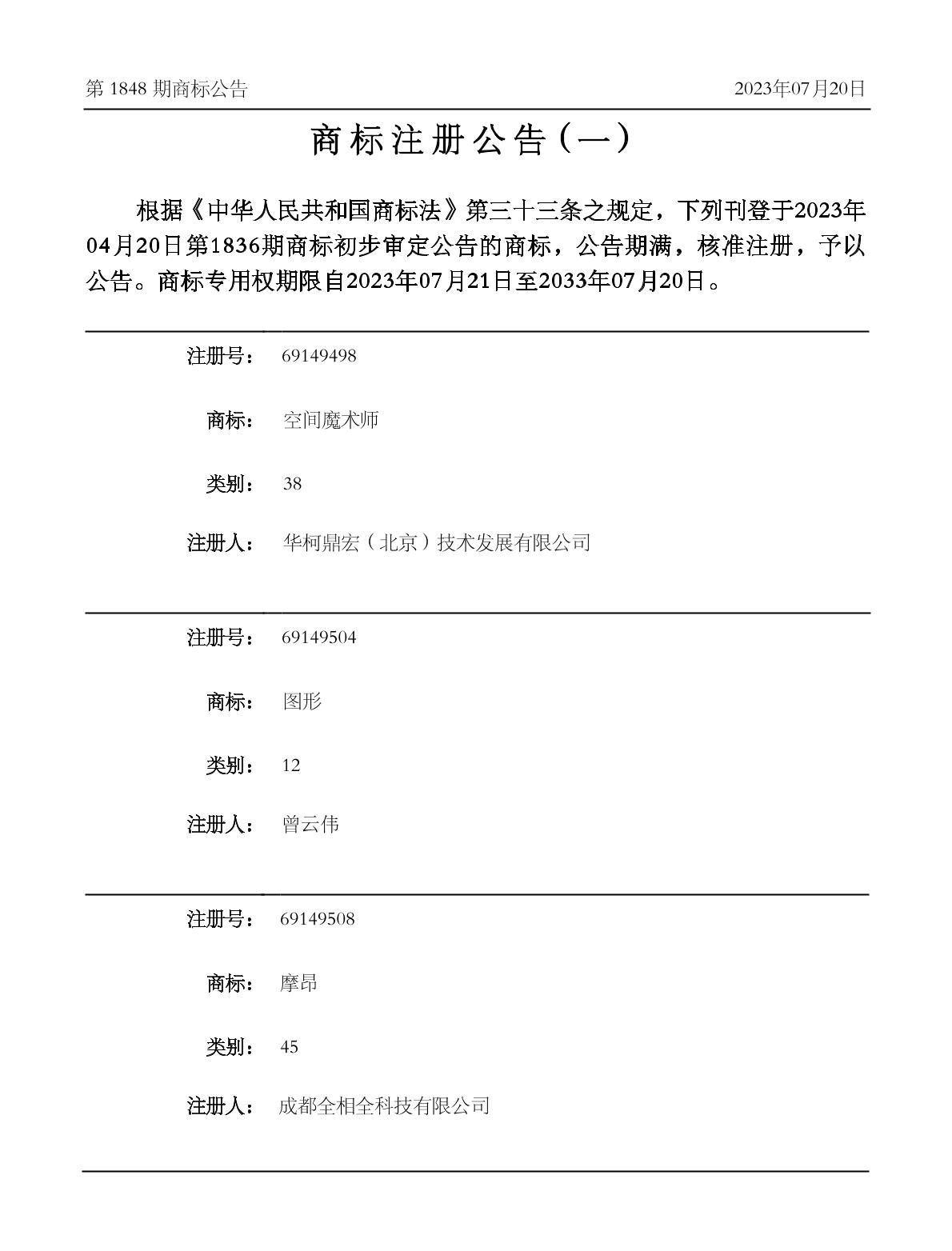 2023-08-19 商标注册申请 | 注册证发文