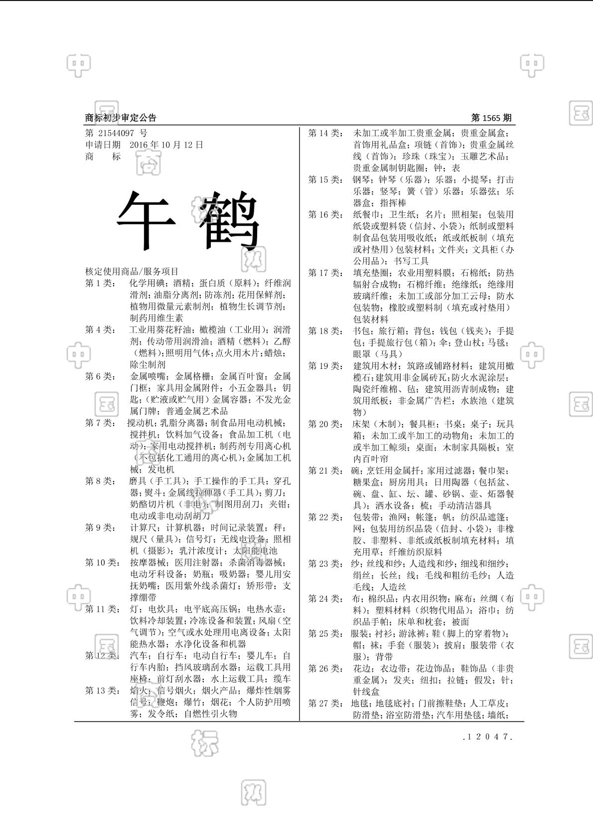 2016-11-23 商标注册申请 | 等待受理通知书发文