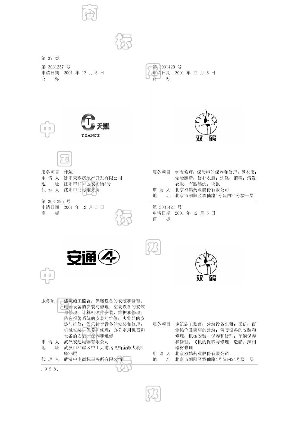 3701-建筑施工监督;3702-商业摊位及商店的建筑;3702-建筑设备出租;3703-采矿;3705-供暖设备的安装和修理;3706-机械安装、保养和修理;3707-车 辆保养和修理;3708-飞机的保养与修理;3709-造船;3710-照相器材修理 - 867