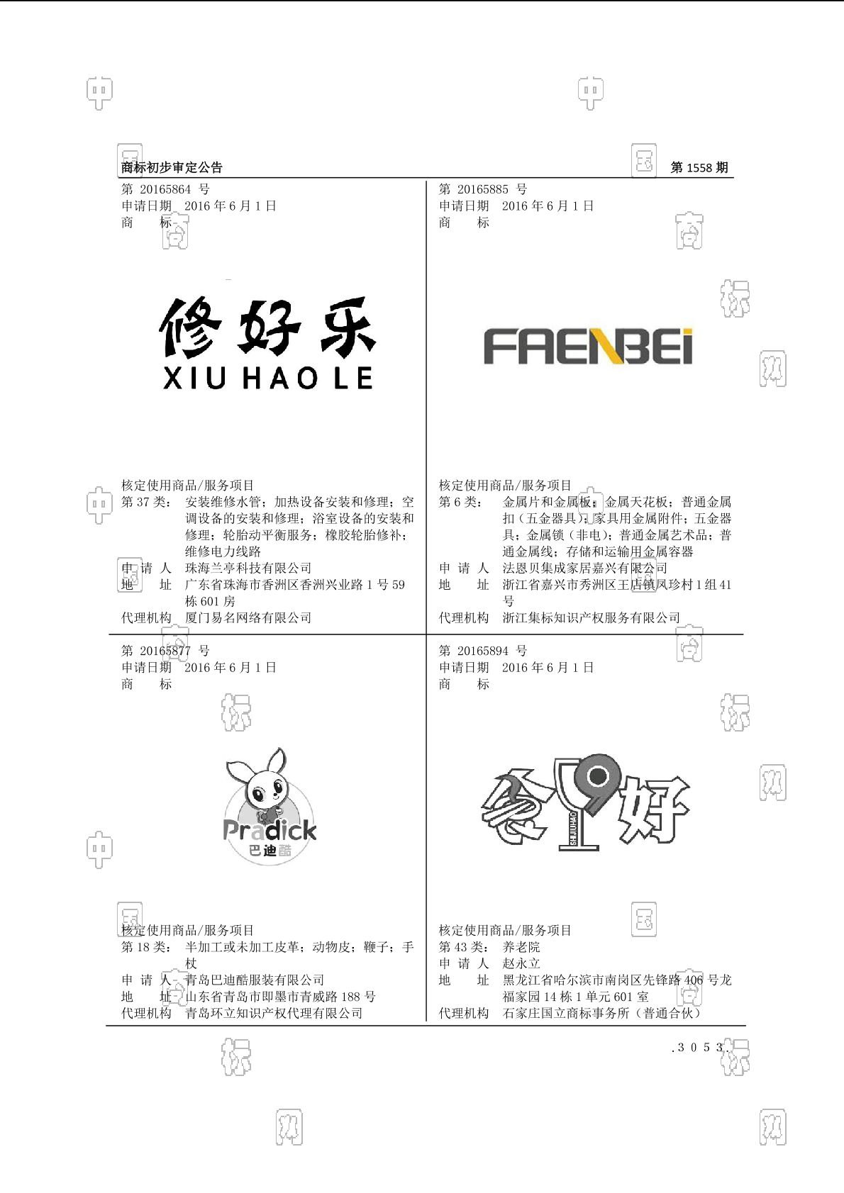 2017-03-22 商标注册申请 | 等待驳回通知发文