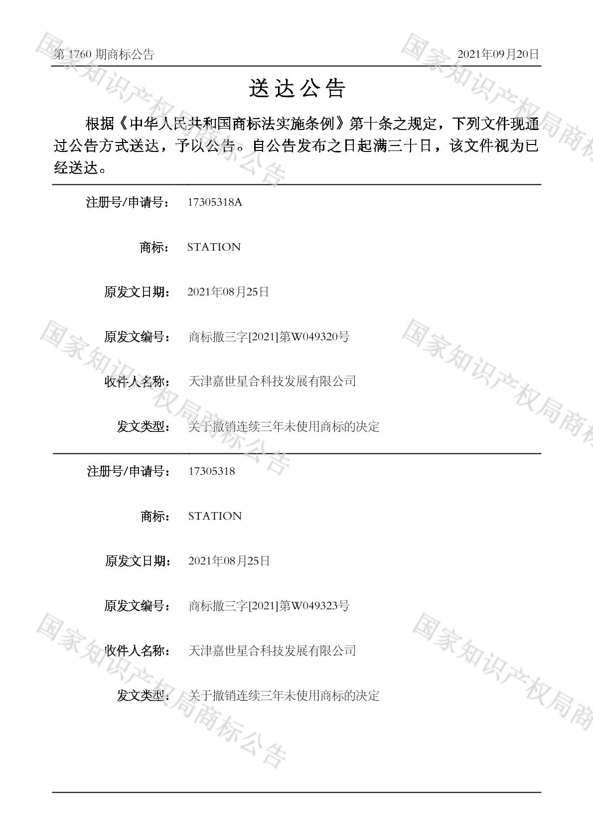 2021-09-20 撤销连续三年停止使用注册商标 | 排版送达公告
