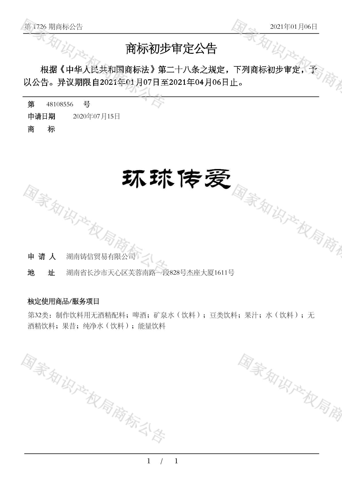 3201-啤酒;3202-无酒精饮料;3202-果昔;3202-果汁;3202-水(饮料);3202-矿泉水(饮料);3202-纯净水(饮料);3202-能量饮料;3202-豆类饮料;3203-制作饮料用无酒精配料 - 1726