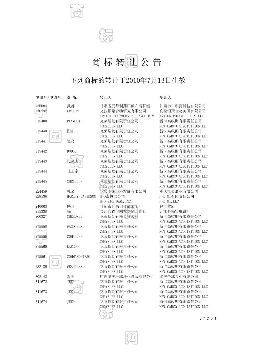 2010-07-13 商标转让 | 后台打印转让核准证明