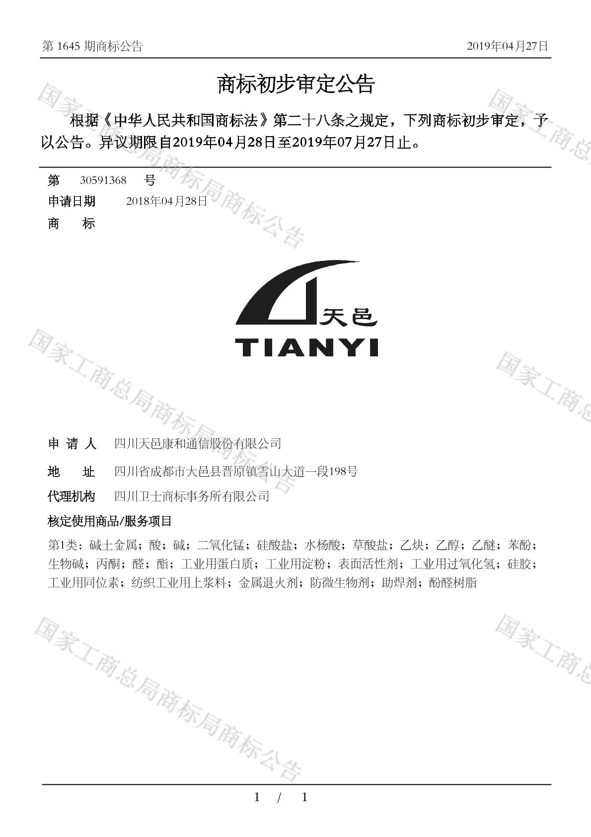 【天邑】商标详情