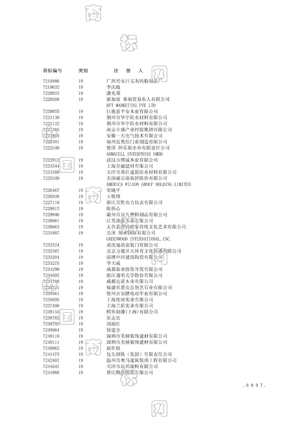 1903-石膏;1904-水泥;1905-混凝土建筑构件;1909-塑钢门窗;1910-砖石容器;1913-石料粘合剂;1914-石、混凝土或大理石像;1914-石头、混凝土或大理石艺术品;1915-非金属碑 - 1230