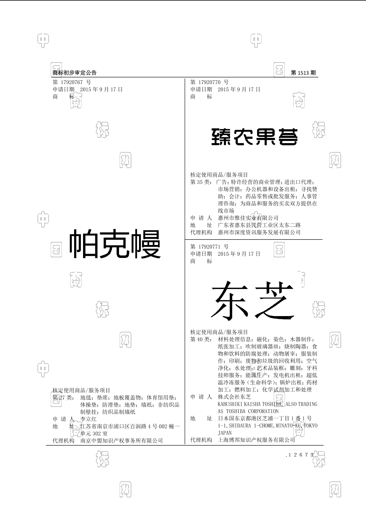 4001-材料处理信息;4002-磁化;4003-染色;4004-木器制作;4005-纸张加工;4006-吹制玻璃器皿;4007-烧制陶器;4008-食物和饮料的防腐处理;4009-动物屠宰;4010-服装制作;4011-印刷;4012-废物和垃圾的回收利用;4013-空气净化;4014-水处理;4015-化学试剂加工和处理;4015-发电机出租;4015-燃料加工;4015-牙科技师服务;4015-能源生产;4015-艺术品装框;4015-药材加工;4015-超低温冷冻服务(生命科学);4015-锅炉出租;4015-雕刻 - 1513