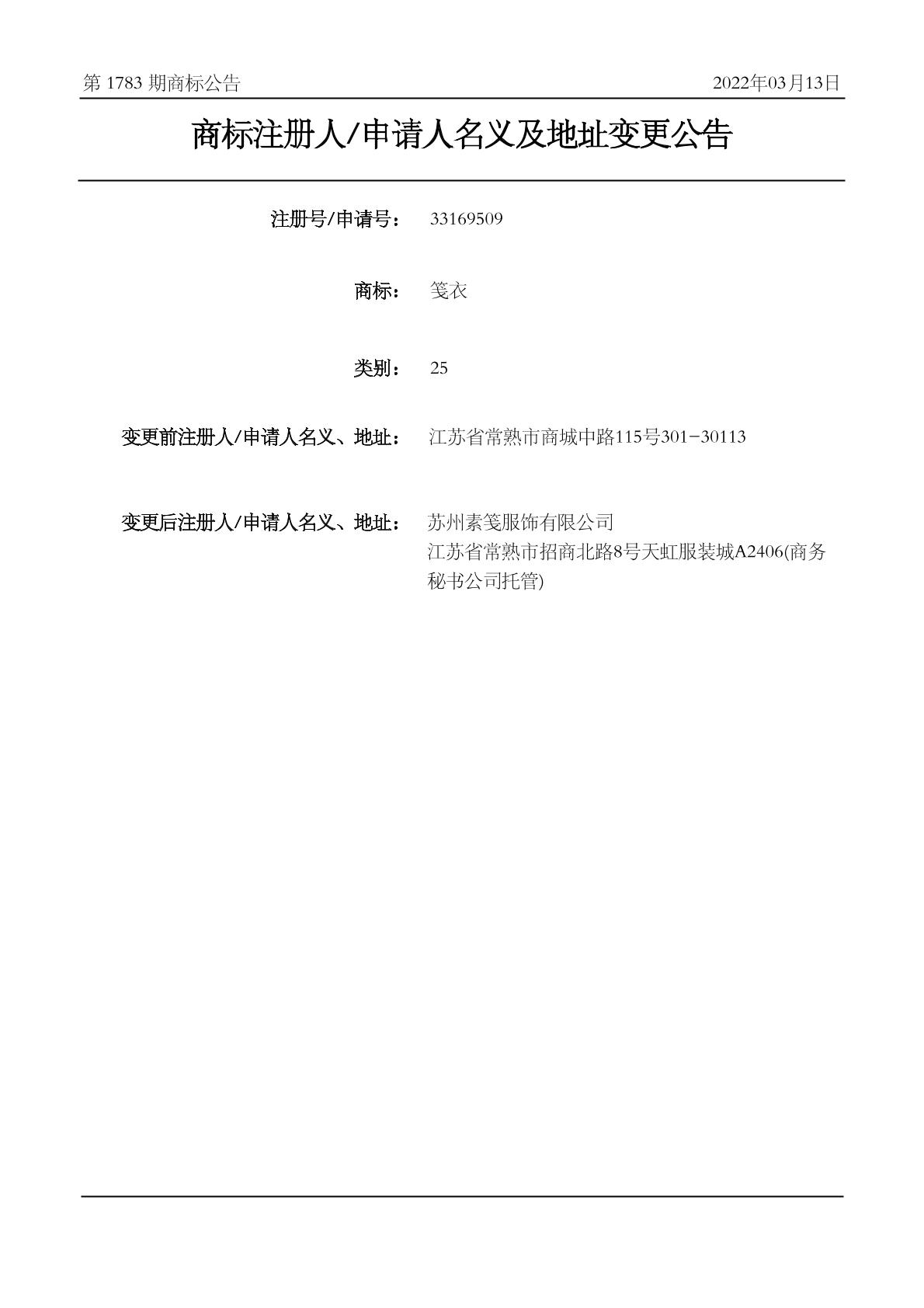 2022-03-10 变更商标申请人/注册人名义/地址 | 核准证明打印发送