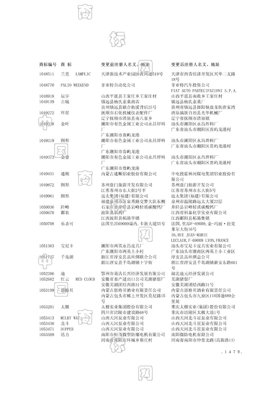 商标注册人/申请人名义及地址变更公告 2020-12-13 第1723期 查看公告