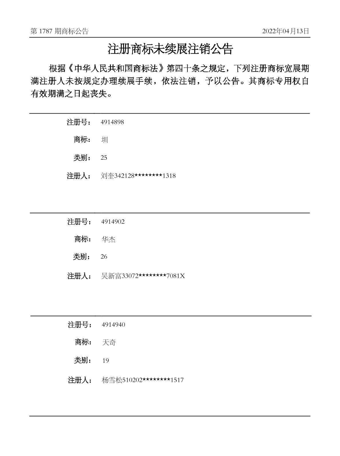 2022-04-13 期满未续展注销商标 | 排版未续展注销公告
