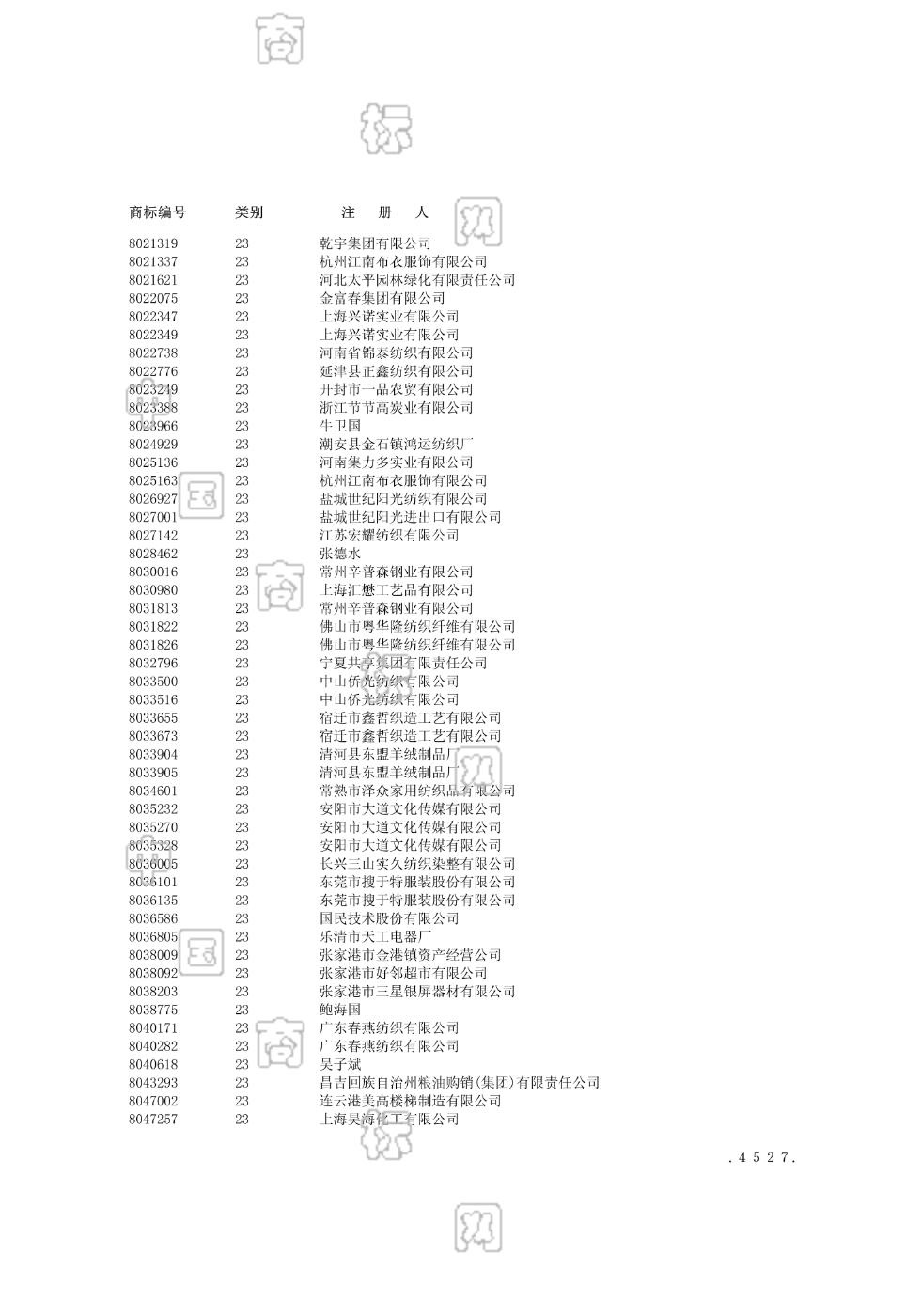 2301-人造丝;2301-人造线和纱;2301-弹力丝(纺织用);2301-棉线和棉纱;2301-毛线和粗纺毛纱;2301-纱;2301-纺织线和纱;2302-人造线和纱;2302-棉线和棉纱;2302-纺织线和纱;2302-线;2302-蜡线;2303-毛线;2303-毛线和粗纺毛纱 - 1239