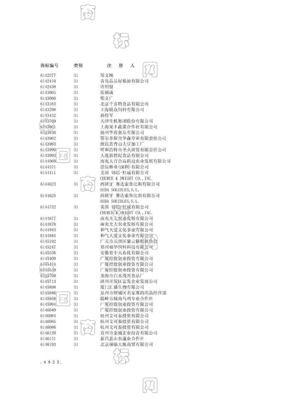 3101-树木;3102-谷(谷类);3103-植物;3104-活动物;3105-鲜水果;3106-新鲜蔬菜;3107-植物种子;3108-饲料;3109-酿酒麦芽;3110-动物栖息用品 - 1169
