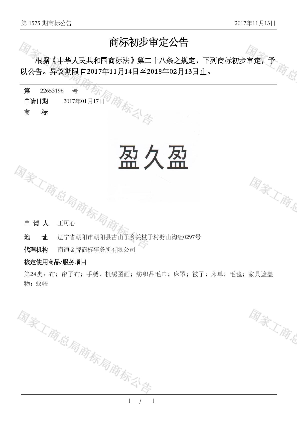 【盈久盈】商标详情