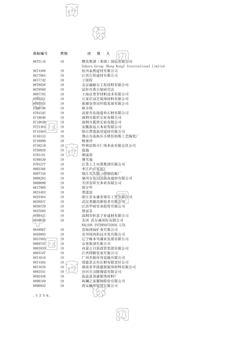 1902-建筑灰浆;1902-膨胀珍珠岩;1906-建筑用非金属墙砖;1907-防火水泥涂料;1908-屋顶用沥青涂层;1909-建筑用非金属覆盖层;1909-非金属管道;1912-涂层(建筑材料);1912-非金属建筑涂面材料;1913-石料粘合剂 - 1315