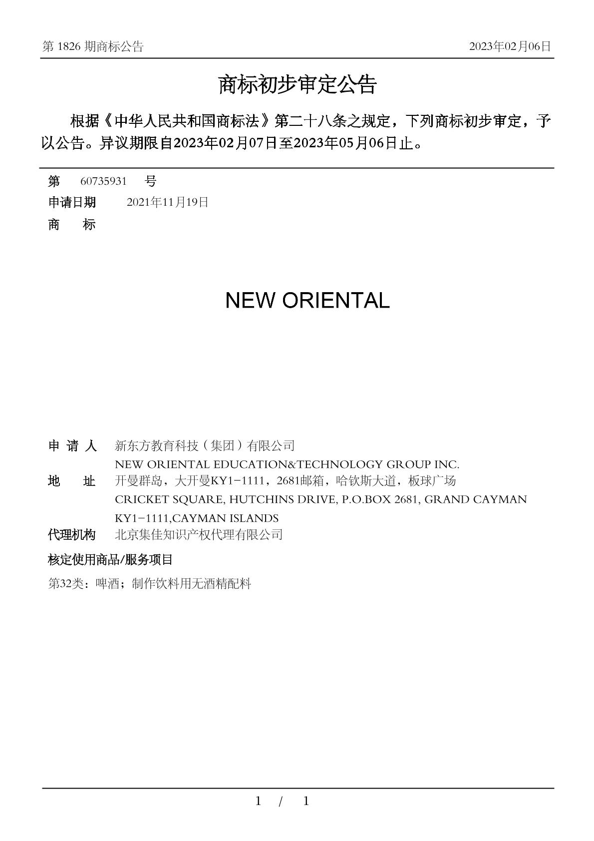 【NEW ORIENTAL】商标详情