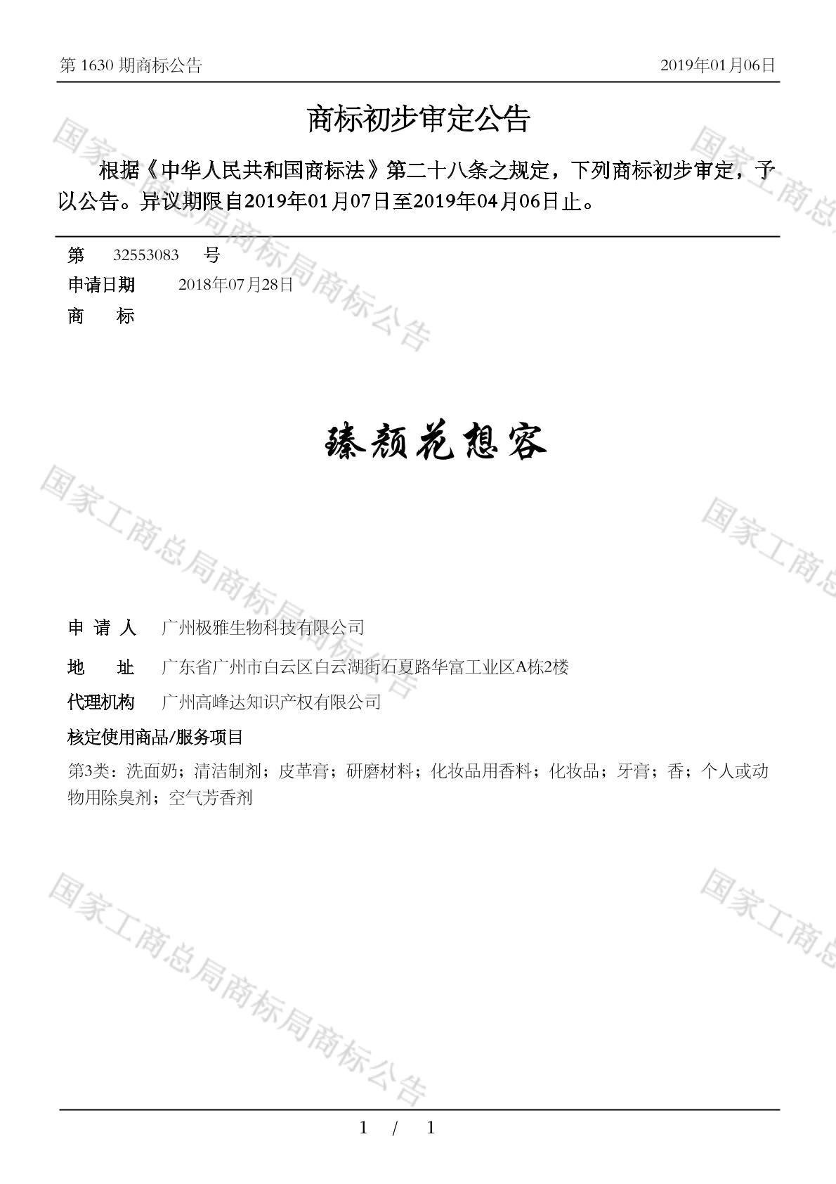 0301-洗面奶;0302-清洁制剂;0303-皮革膏;0304-研磨材料;0305-化妆品用香料;0306-个人或动物用除臭剂;0306-化妆品;0307-牙膏;0308-香;0309-个人或动物用除臭剂;0310-空气芳香剂 - 1630