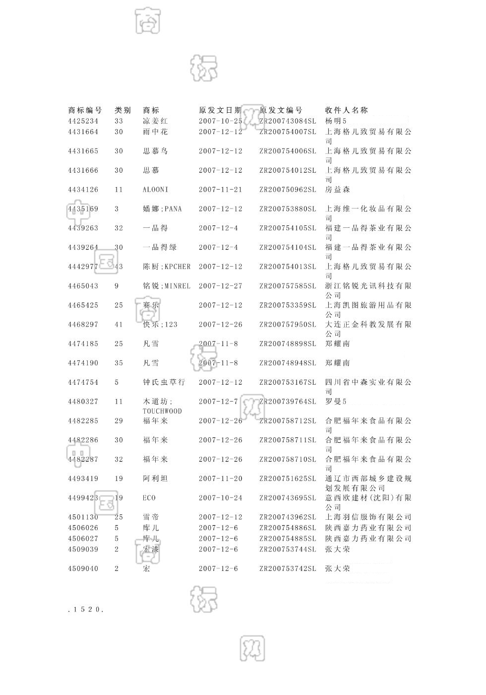 2007-11-07 商标转让 | 申请收文