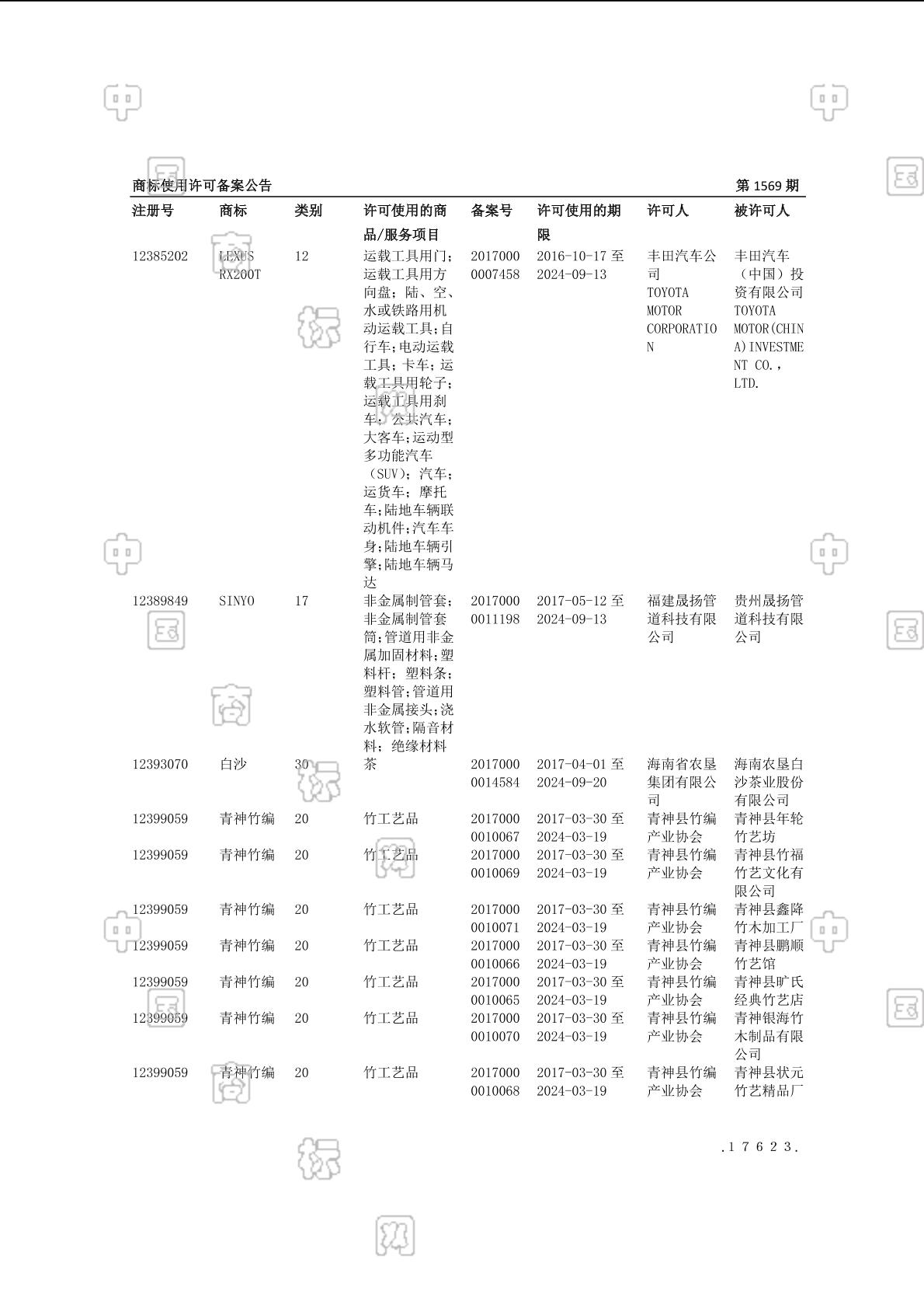 2017-05-27 商标使用许可备案 | 申请收文