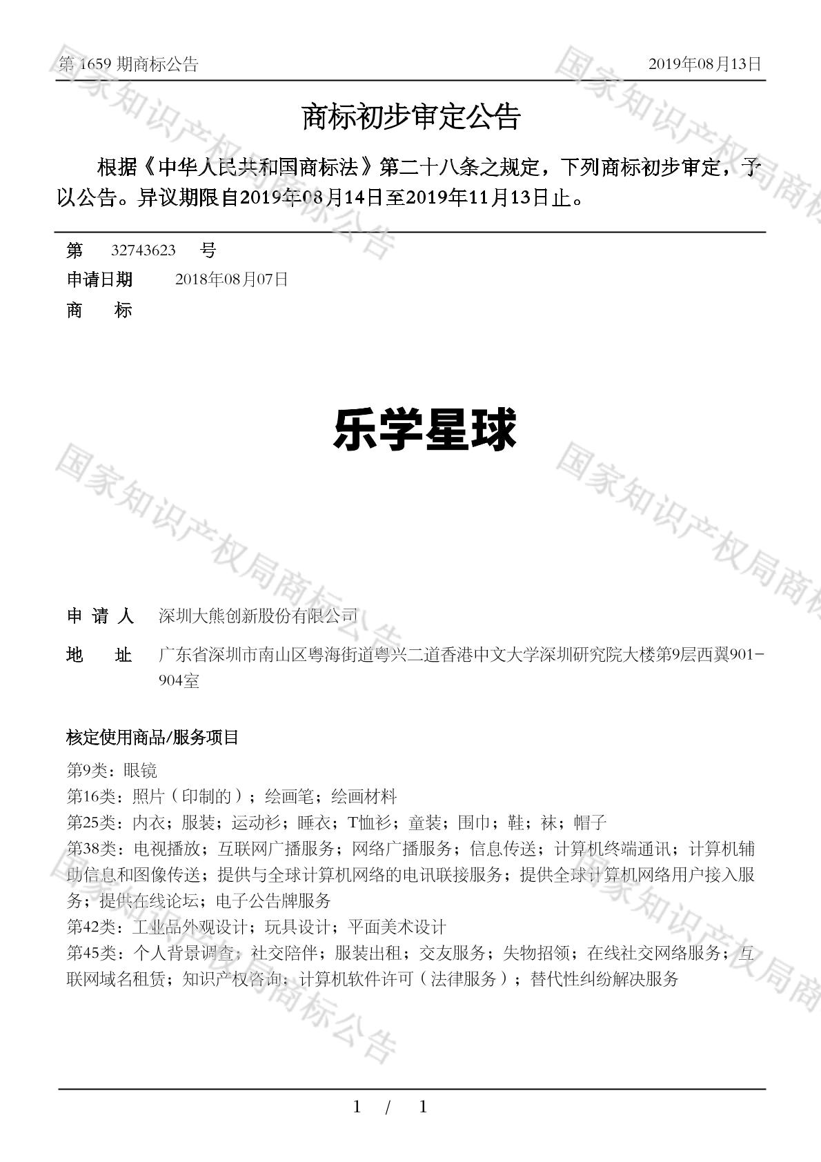4101-教育;4102-安排和组织培训班;4102-安排和组织现场教育论坛;4102-组织教育或娱乐竞赛;4102-组织文化或教育展览;4104-书籍出版;4104-提供在线电子出版物(非下载);4104-电子书籍和杂志的在线出版;4105-广播和电视节目制作;4105-电视文娱节目 - 深圳大熊创新股份有限公司