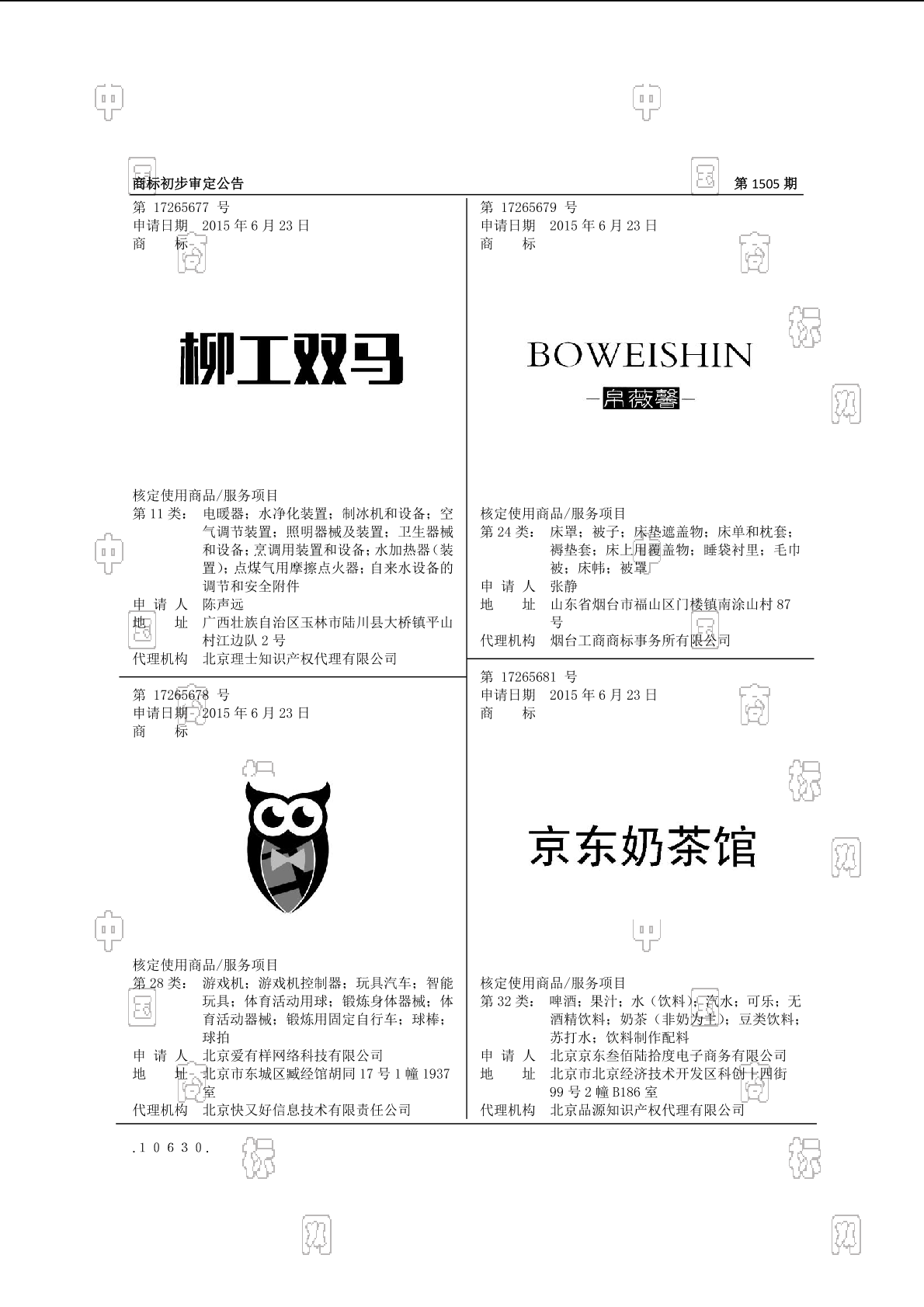 2015-10-15 商标注册申请 | 等待受理通知书发文