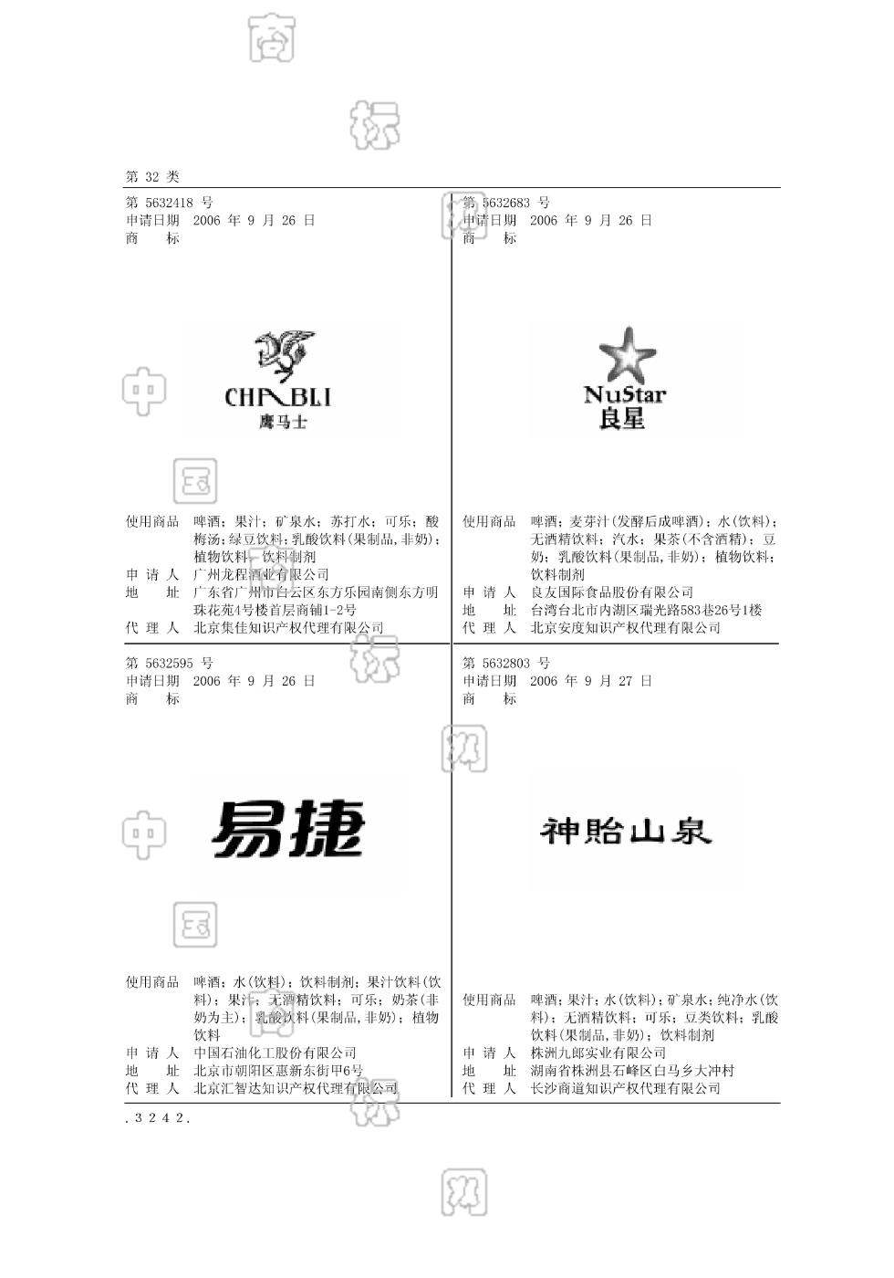 3201-啤酒;3202-乳酸饮料(果制品,非奶);3202-可乐;3202-果汁;3202-植物饮料;3202-矿泉水;3202-绿豆饮料;3202-苏打水;3202-酸梅汤;3203-饮料制剂 - 1164