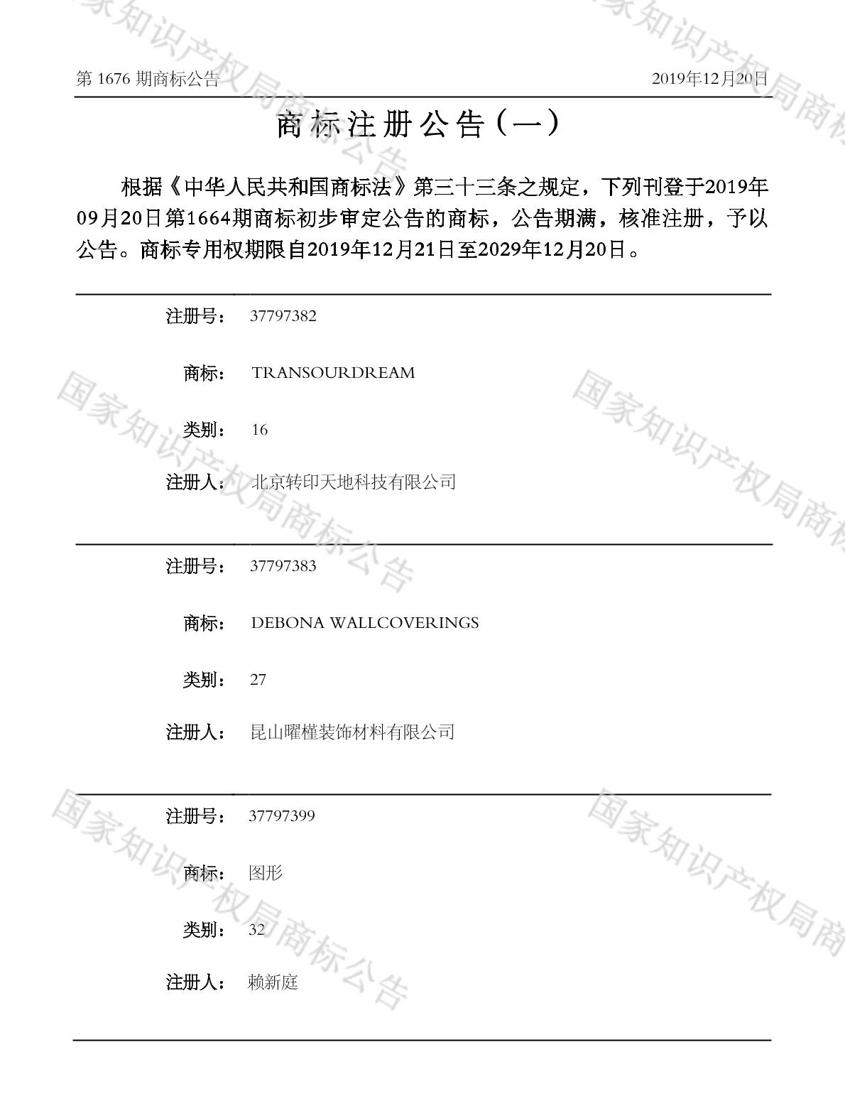 2701-地毯;2702-席;2703-地垫;2704-墙纸;2704-纺织品制墙纸;2704-非纺织品制壁挂 - 1664