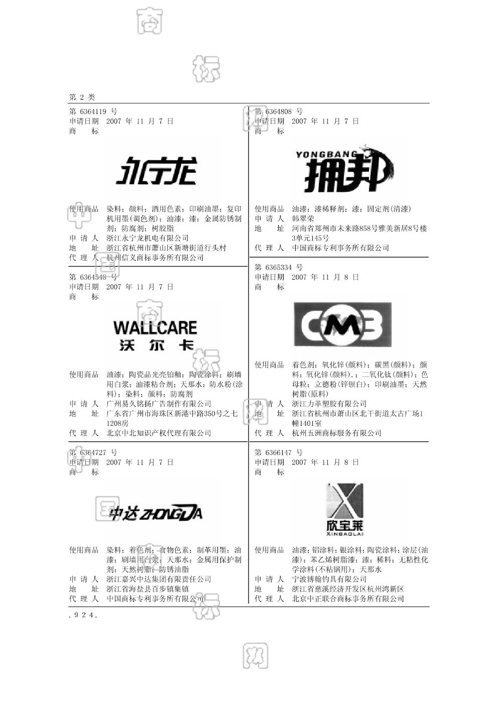 0201-染料;0202-颜料;0205-刷墙用白浆;0205-天那水;0205-油漆;0205-油漆粘合剂;0205-防水粉(涂料);0205-陶瓷品光亮铂釉;0205-陶瓷涂料;0206-防腐剂 - 1197