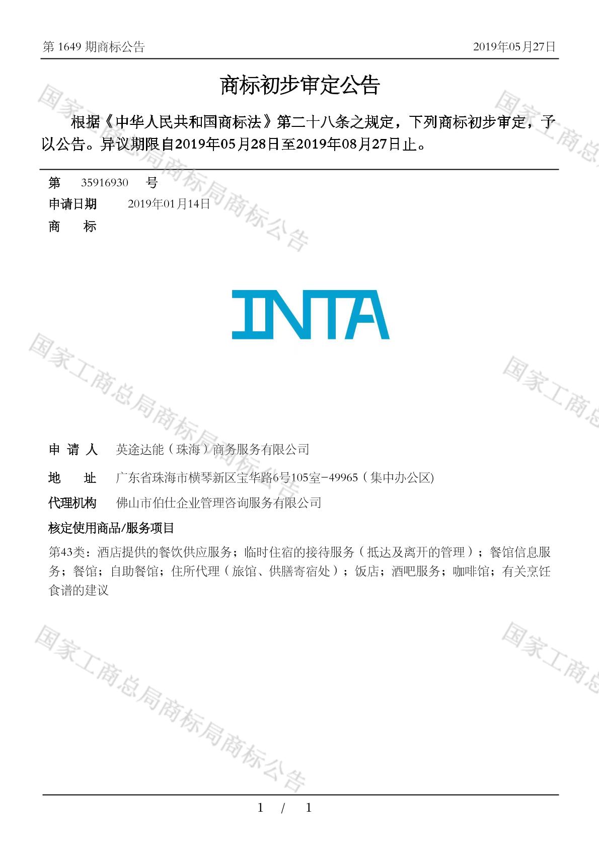 4301-临时住宿的接待服务(抵达及离开的管理);4301-住所代理(旅馆、供膳寄宿处);4301-咖啡馆;4301-有关烹饪食谱的建议;4301-自助餐馆;4301-酒吧服务;4301-酒店提供的餐饮供应服务;4301-餐馆;4301-餐馆信息服务;4301-饭店 - 1649