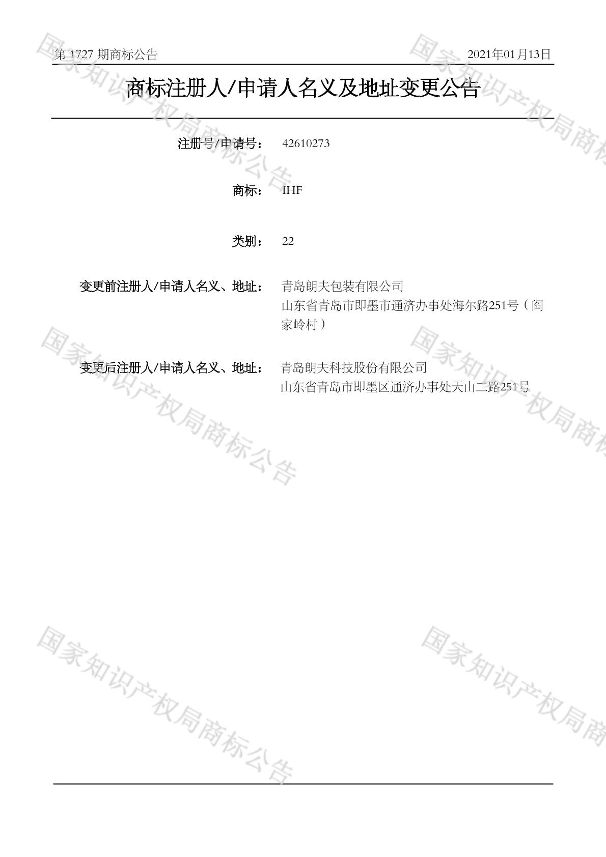 2021-01-05 变更商标申请人/注册人名义/地址 | 核准证明打印发送