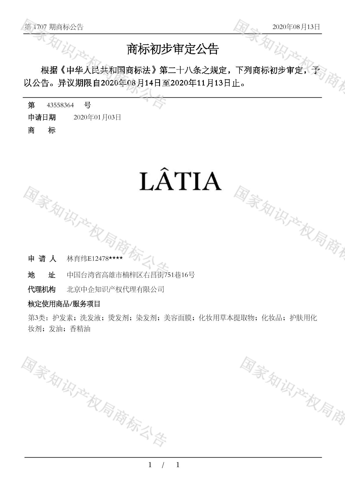 0301-护发素;0301-洗发液;0305-香精油;0306-化妆品;0306-化妆用草本提取物;0306-发油;0306-护肤用化妆剂;0306-染发剂;0306-烫发剂;0306-美容面膜 - 1707