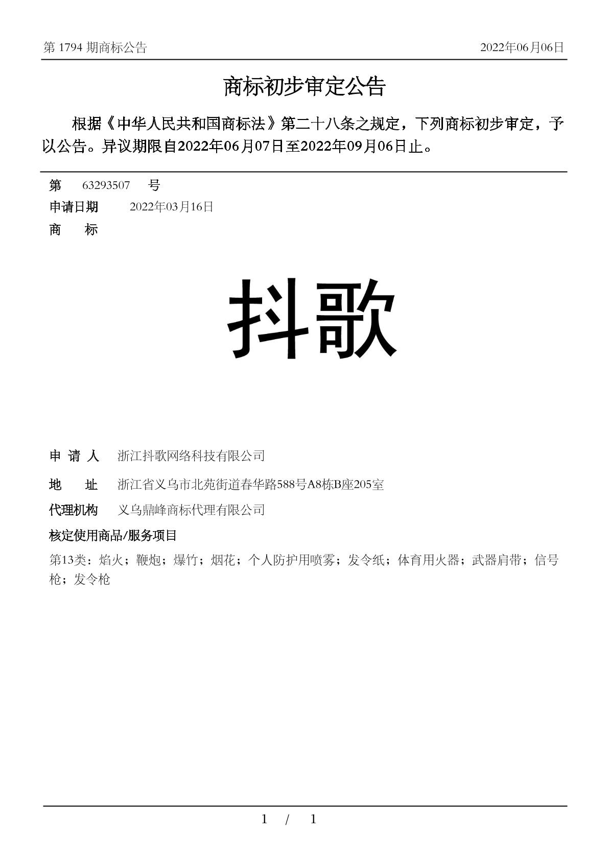 【抖歌】商标详情