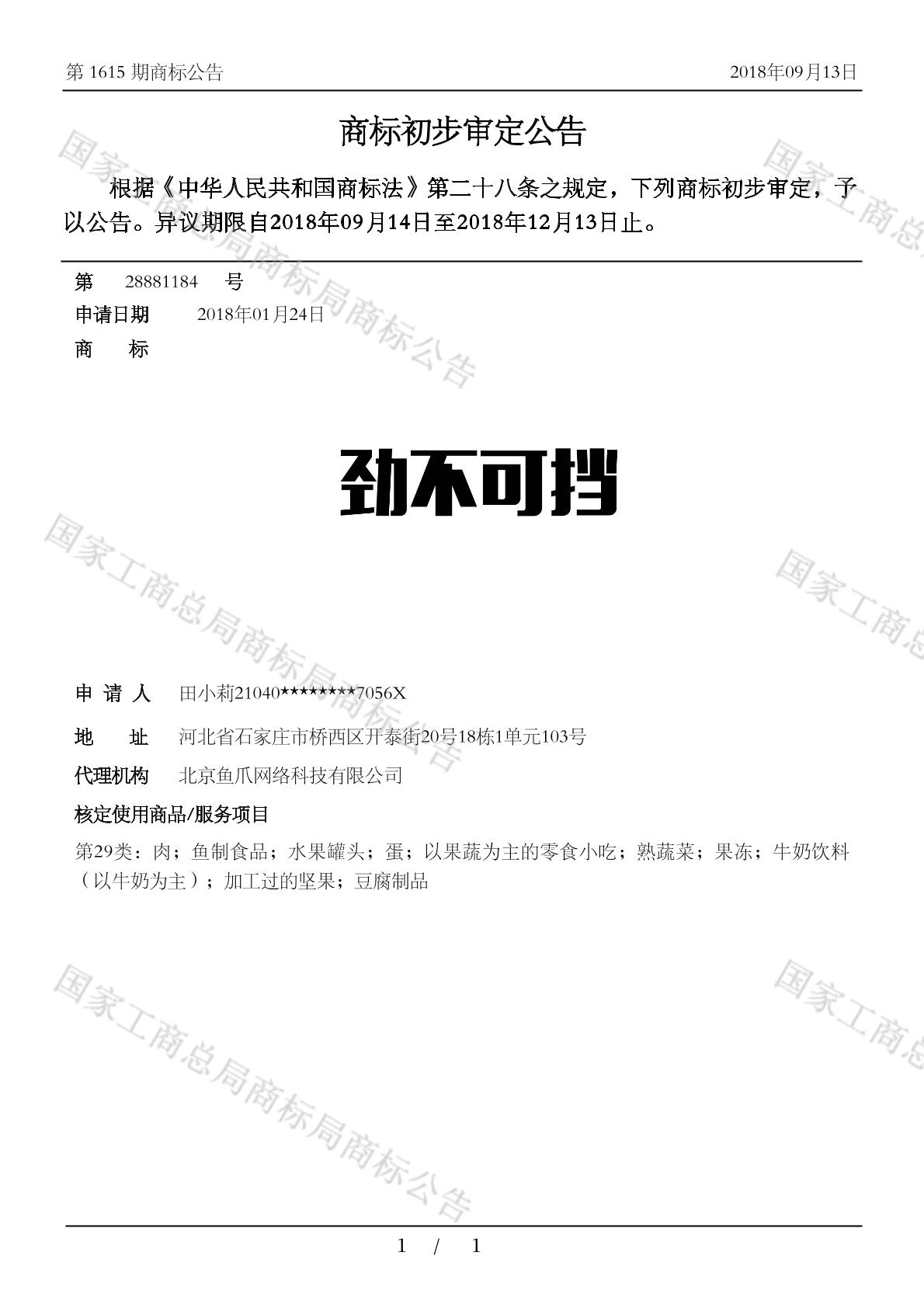 2901-肉;2902-鱼制食品;2903-水果罐头;2904-以果蔬为主的零食小吃;2905-熟蔬菜;2906-蛋;2907-牛奶饮料(以牛奶为主);2910-果冻;2911-以果蔬为主的零食小吃;2911-加工过的坚果;2913-豆腐制品 - 1615