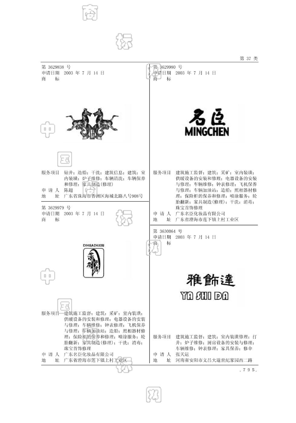 3701-建筑信息;3702-建筑;3703-钻井;3704-室内装璜;3705-炉子维修;3707-车辆保养和修理;3707-车辆清洗;3709-造船;3715-家具制造(修理);3716-干洗 - 982