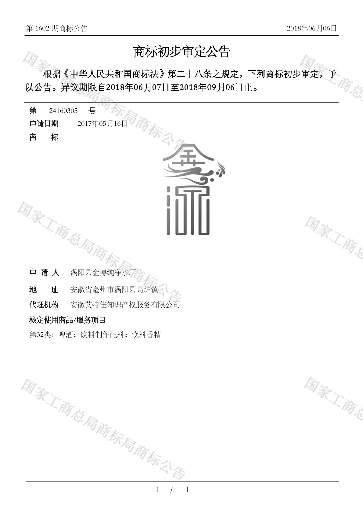 3201-啤酒;3202-无酒精果汁;3202-柠檬水;3202-矿泉水(饮料);3202-米制 饮料;3202-纯净水(饮料);3202-蒸馏水(饮料);3202-起泡水;3203-饮料制作配料;3203-饮料香精 - 1602