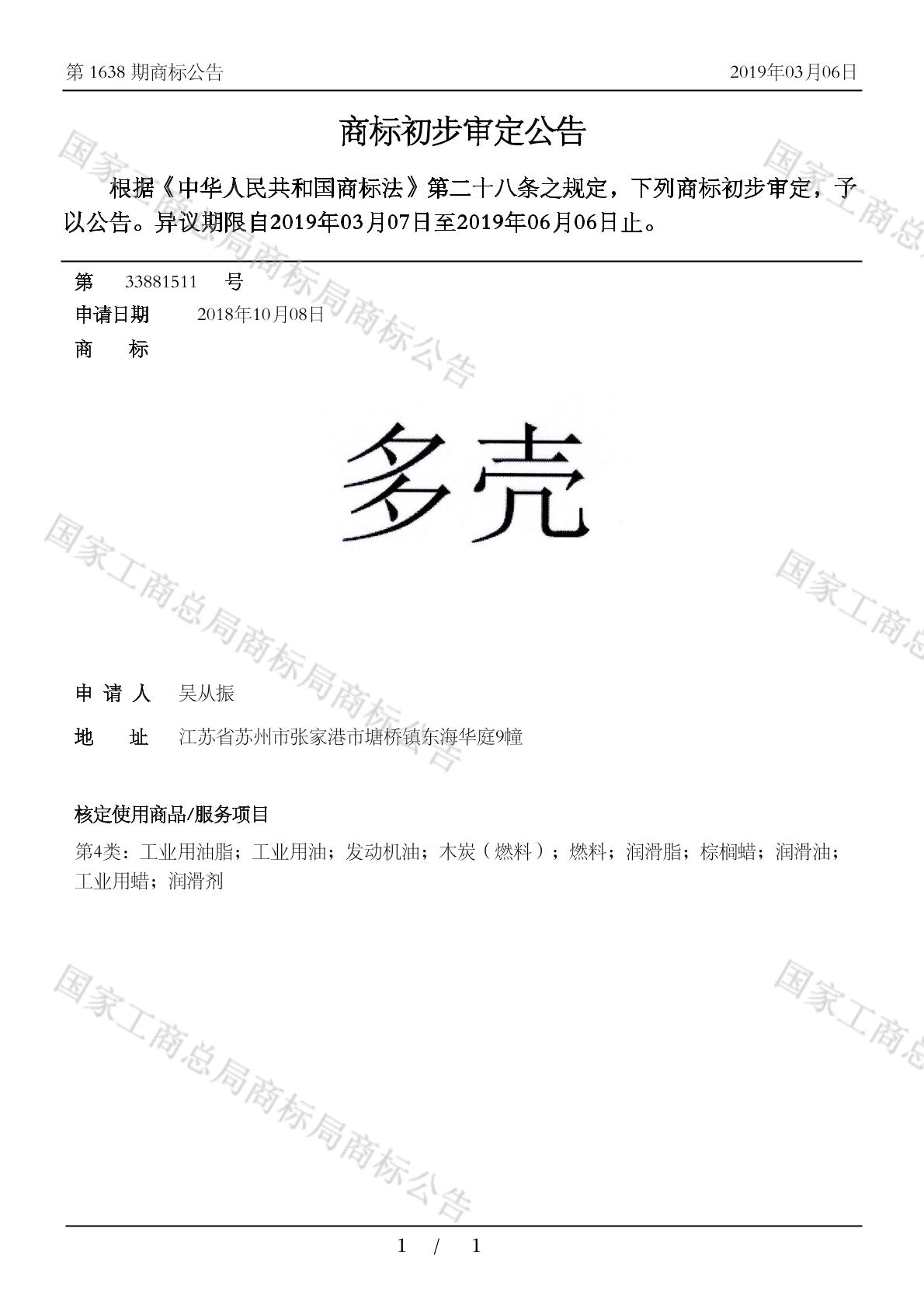 0401-发动机油;0401-工业用油;0401-工业用油脂;0401-润滑剂;0401-润滑油;0401-润滑脂;0402-燃料;0403-木炭(燃料);0403-燃料;0404-工业用蜡;0404-棕榈蜡 - 1638