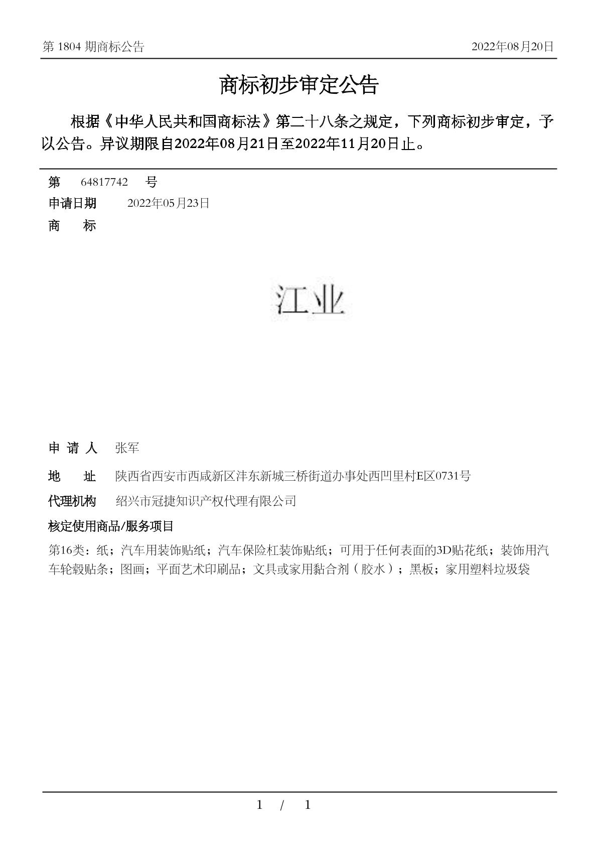 1601-纸;1605-可用于任何表面的3D贴花纸;1605-汽车保险杠装饰贴纸;1605-汽车用装饰贴纸;1605-装饰用汽车轮毂贴条;1607-图画;1607-平面艺术印刷品;1609-家用塑料垃圾袋;1615-文具或家用黏合剂(胶水);1619-黑板 - 1804