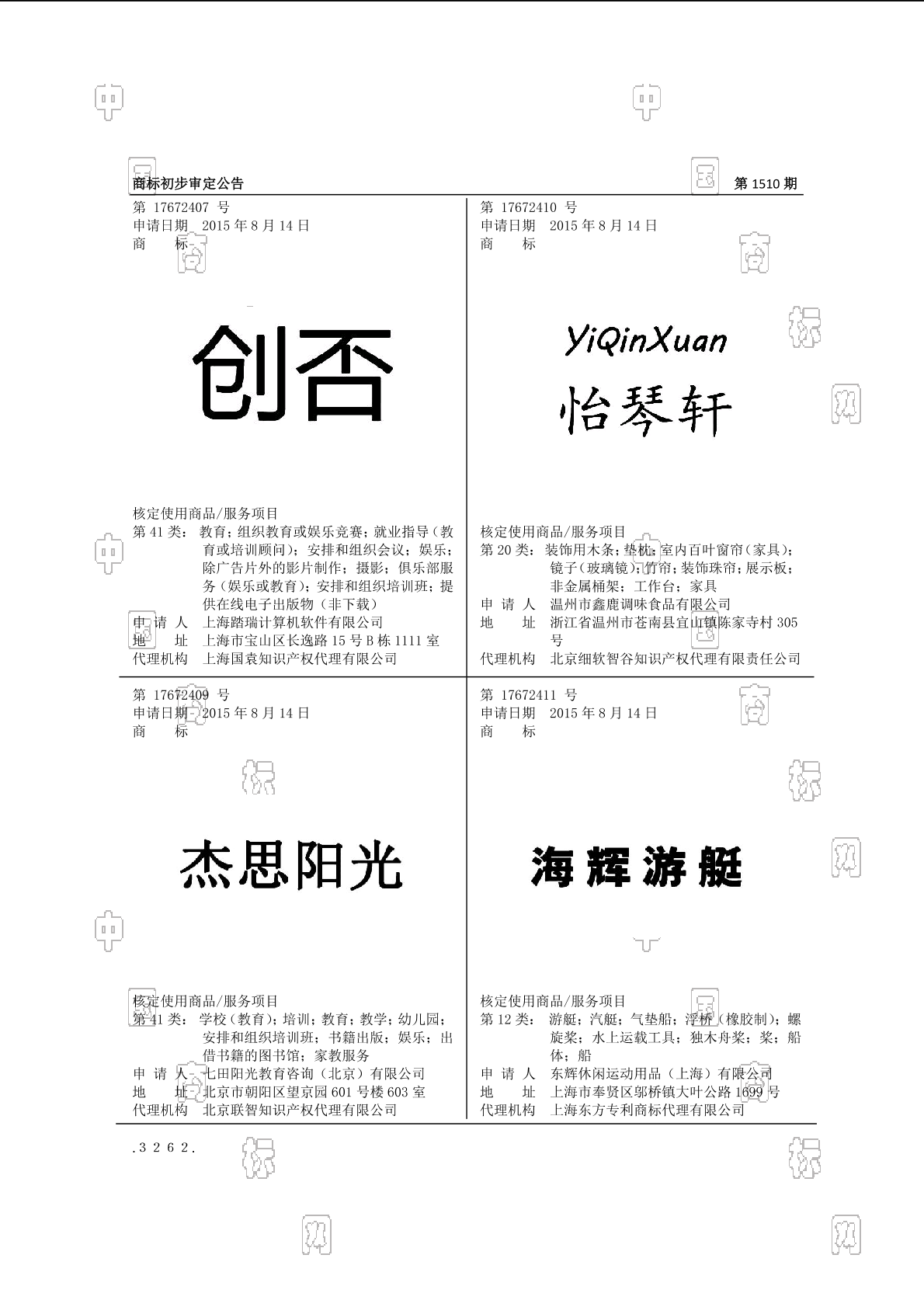 2015-11-26 商标注册申请 | 等待受理通知书发文